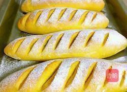 步骤7、发酵好的面包,均匀筛上面粉,用刀划出喜欢的花纹。然后烤箱180度预热5分钟,放入面包,烤20分钟左右即可