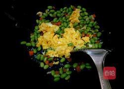 步骤7、放毛豆、鸡蛋、炒匀即可