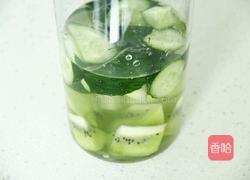 步骤8、然后在维生素菊粉溶液中加入我们之前准备好的黄瓜和猕猴桃。