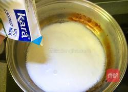 步骤6、然后把吉利丁倒入牛奶椰浆中搅拌均匀。晾凉备用。