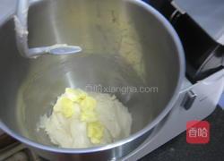 步骤1、除黄油以外的所有原料放厨师机里,先用钩子稍微搅拌均匀。