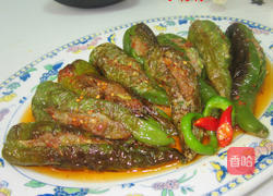 步骤10、煎熟透,撒点盐让辣椒入味,再撒点辣椒粉提辣提色即可