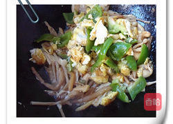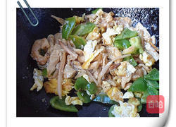 步骤4、鸡蛋炒熟备用,青椒也一起煸炒一下。