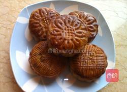 步骤9、将烤箱200度预热后,将烤盘放进中层,烘烤5分钟,月饼定型后,将烤盘拿出,稍晾凉后,上面刷一层蛋液,蛋黄和蛋白的比例是2:1,一定要一次刷过,否则烤出的颜色会很重。将刷好蛋液的月饼继续入烤箱烘烤15分钟。烤好的月饼要完全晾凉,此时的月饼表皮较干燥,放入密封的保鲜盒中放1-2天等待回油,表皮变软后即可食用。