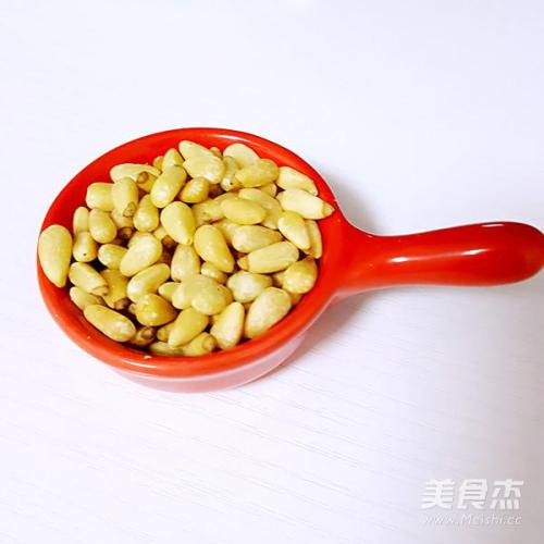 步骤3、松子提前用烤箱烤好或者用锅里放油,油温的时候放入松子炸香