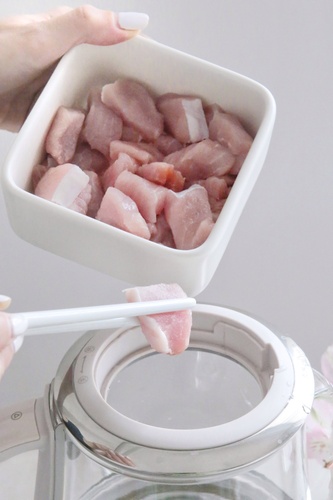 步骤2、程序结束后,将瘦肉取出,清洗干净养生壶,待用。