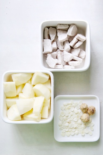 步骤3、将苹果、南北杏、无花果洗净,苹果去核切块备用。