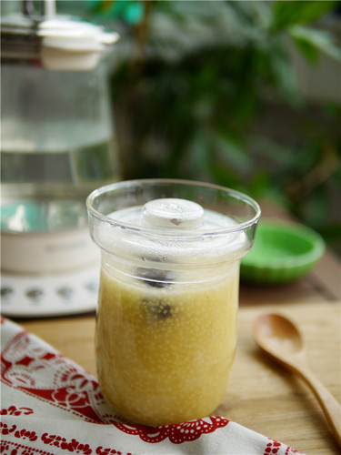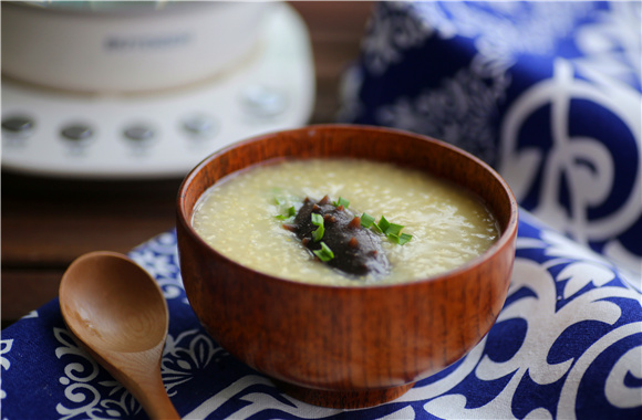 步骤5、、养生汤模式大概一小时,炖至50分钟时,加入海参继续炖10分钟, 粥炖好后加少许香葱、盐、白胡椒提味即可。