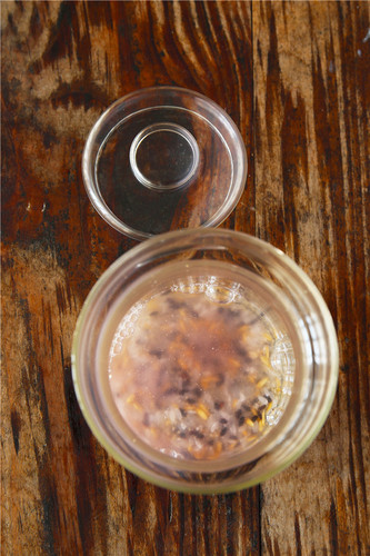 步骤4、 在煲汤的过程中,将米洗净,放入炖盅;