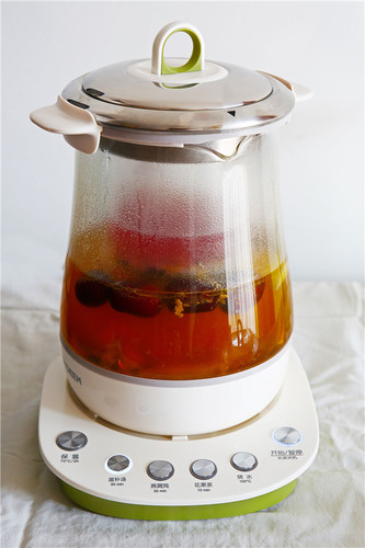 步骤6、 在滋补汤程序进行50分钟后,将炖盅放入养生壶一起炖,直到程序结束,汤中加少许盐调味。