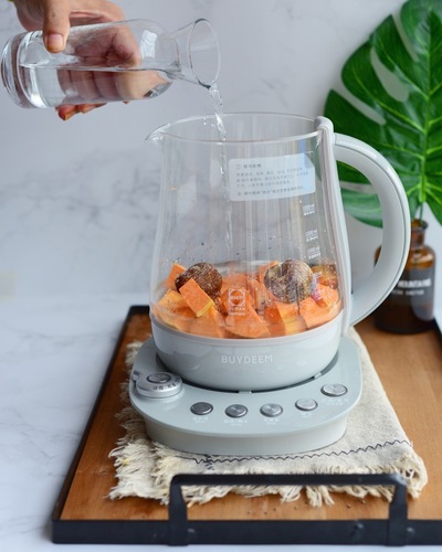 步骤2、把红薯和蜜枣放入养生壶内,加入1200ml水,选择养生汤模式。