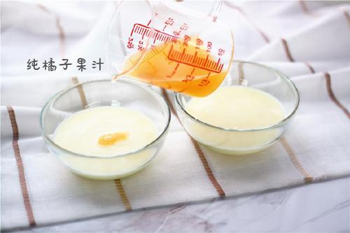 步骤4、将90g橘子果汁加入到上一步的液体中;