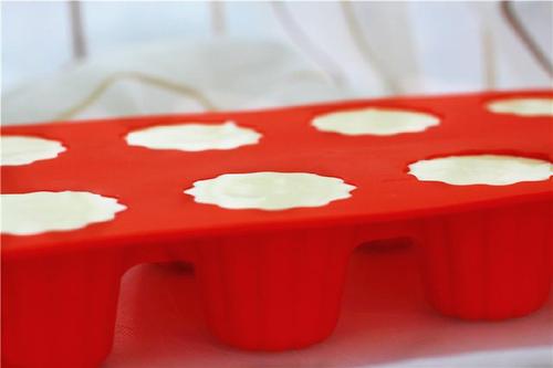 步骤9、硅胶模脱起来很容易,但仍需要小心,别破坏慕斯的外表。
