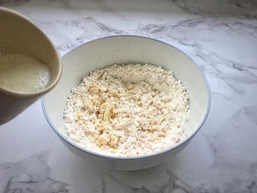 步骤5、分次加入冲泡好奶粉,揉成饼干面团。