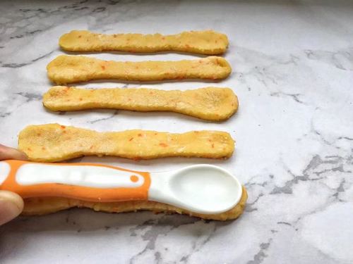 步骤8、小贴士 1、奶粉比较甜,制作宝宝磨牙饼干不宜太甜哦,可酌情添加白糖。 2、做好的磨牙饼干,可用罐子密封保存。 3、制作磨牙棒饼干时,可以在磨牙饼干中添加宝宝喜欢的食物。 4、每个人擀的饼干厚度不一,可根据自己的实际情况灵活掌握烘烤时间。