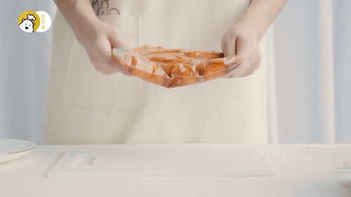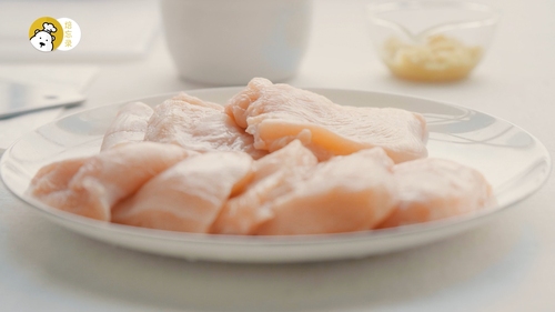 步骤8、姜磨成蓉,与照烧汁、淀粉混合;鸡胸肉吸干水分,切成合适大小,与调料一起装入密实袋中,排去多余气体,密封腌制半小时以上(可在面团排气前操作);