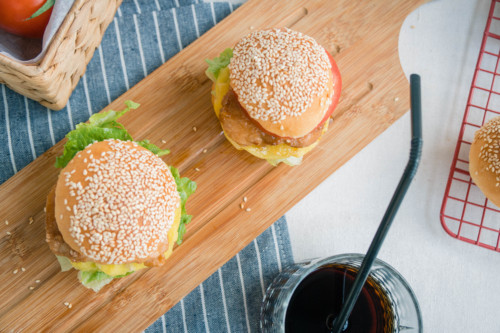 步骤12、Tips: 1、用鸡胸肉鸡腿肉都可以,鸡腿肉的话就不用加淀粉; 2、没有照烧汁的话可以用生抽、料酒、耗油、蜂蜜调配; 3、方子做的是个头比较小的汉堡,如果想做普通大小的汉堡,二发跟烘烤的时间需要延长; 4、多余的小圆包可以密封冷冻保存一个月,下次要吃之前先拿出来烤箱100℃(无需预热)烤15分钟左右至温热即可。