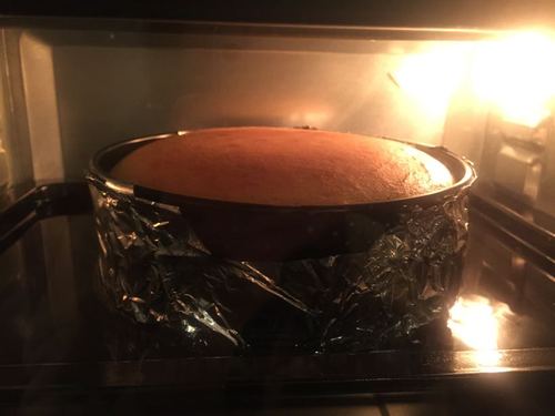 步骤8、出炉后的蛋糕,冷却后放入冰箱冷藏4个小时,再脱模切块。