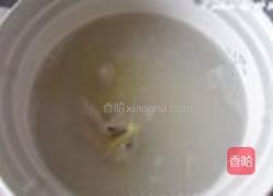 步骤9、粥煮开后,加入姜丝和鱼骨先煮熟。