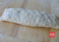 步骤8、在把放了馅料的饼卷起三分之一翻动在翻动。