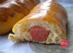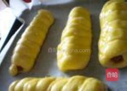 步骤3、取出面团擀成条状,卷在香肠上,放入烤箱,发酵功能