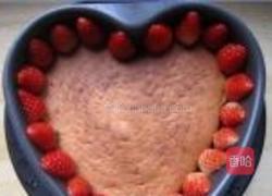 步骤12、烤好的饼底,放入模具内,外圈摆上草莓(切面朝外)。
