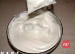 步骤5、蛋白加塔塔粉打至粗泡,白砂糖分3次加入,打至偏干性发泡,约9分发。