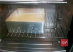 步骤7、将面糊倒入烤盘。预热的烤箱。