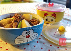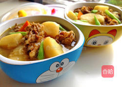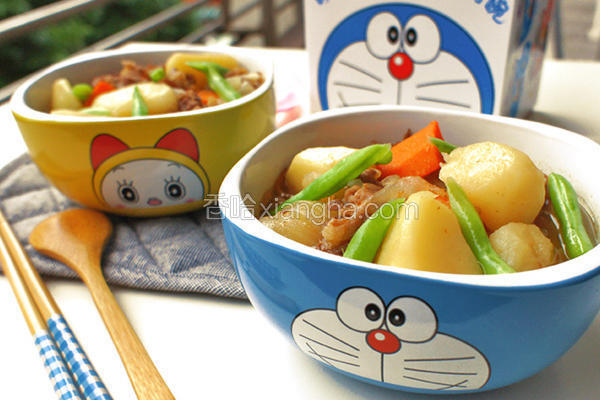 步骤11、暖唿唿的马铃薯炖肉最适合冬天,装在哆啦A梦陶瓷碗里,想吃的时候微波一下,不论何时都能温暖享用。