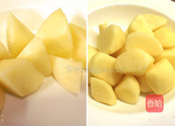 步骤3、马铃薯要把稜角用刀子去掉,变成没有尖角的平滑块状,这样经过炖煮才不易散掉,汤汁也较不易混浊。