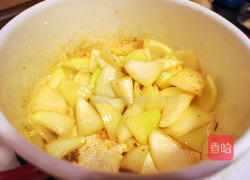 步骤9、加入调味料后,再以小火炖煮10分钟即完成,马铃薯煮至刚刚好松软,一碰就散开。