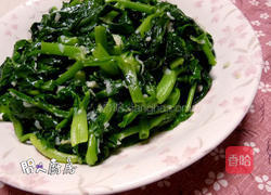 步骤3、烧热镬下适量油,爆香蒜蓉后洒少许盐。