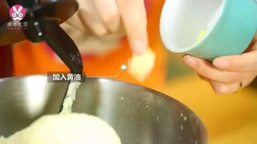 步骤1、面包食材:高筋面粉 350g、牛奶 170g、糖 25g、黄油 30g、酵母 3g、盐 1g、鸡蛋 1个