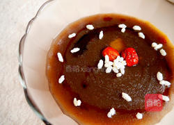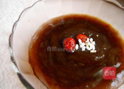 步骤15、加上米香粒、黑糖浆、蜂蜜、红枣即成红枣黑木耳露