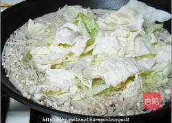 步骤5、利用鸭肉在压力锅里煮的这段时间,把高丽菜和金针菇烫熟后捞起备用。