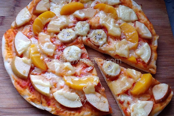步骤8、摆上水果,最后洒上起司丝;再醒面等待约15分钟。