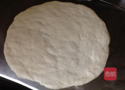 步骤5、面团静置完成后,再揉面团将空气赶出(约1-2分钟),面团抹少许油(防沾黏),搓圆、压扁,用擀面棍擀成约0.3-0.5cm薄圆片。