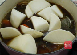 步骤10、分钟后加入白萝卜块再煮20-30分钟即可盛盘上桌
