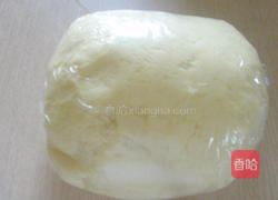 步骤1、(油皮)中筋面粉与糖粉过筛加入猪油搅拌,缓缓加入温水拌匀成团,取出稍微揉至光滑面即可,用保鲜膜盖住,松弛约30分钟备用