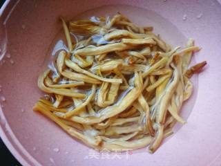 步骤10、锅内适量清水,泡好的黄花菜放入,煮开。