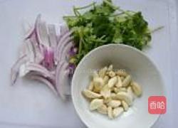 步骤4、蒜头去皮,洋葱切丝,香菜切段。