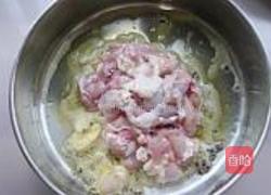 步骤3、切成丁加盐,鸡精,料酒抓匀腌制一个小时。