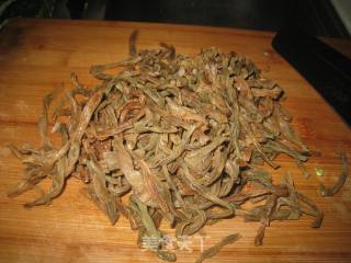 步骤7、加入豆角干,再焖煮约20-30分钟至豆角干也入味了,吸收了汤汁;