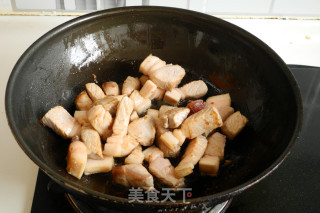步骤4、翻炒至猪肉出油。