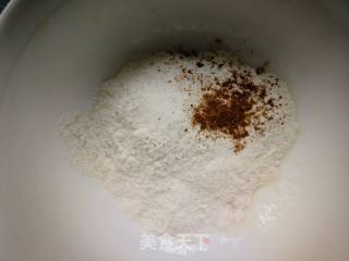 步骤6、和匀,稍稠微稀。这样利于梨花保持外形,不至于炸成面疙瘩。