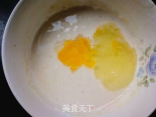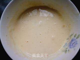 步骤5、适量清水和匀,舀入一勺鸡蛋液,一点玉米油。