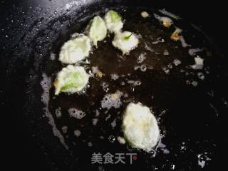 步骤8、锅中油三成热,梨花蘸过面糊,一个个捏入油中,顺手掐去连根花柄。这样好翻面。否则有叶柄在,翻不过面来。