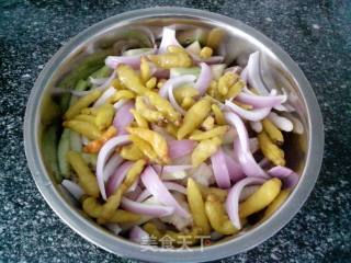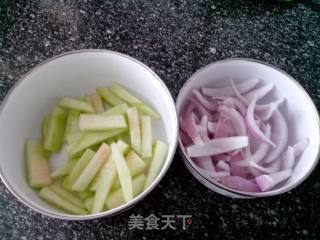 步骤3、洋葱,西瓜皮切块,放入盐腌一下,杀杀菌。