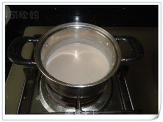 步骤3、煮开后关火 加入2勺布丁粉搅拌均匀即可。
