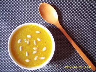 步骤16、没用闪光灯拍的南瓜糊的照片,南瓜味很重,没有放糖或者蜂蜜,是南瓜的甜味!